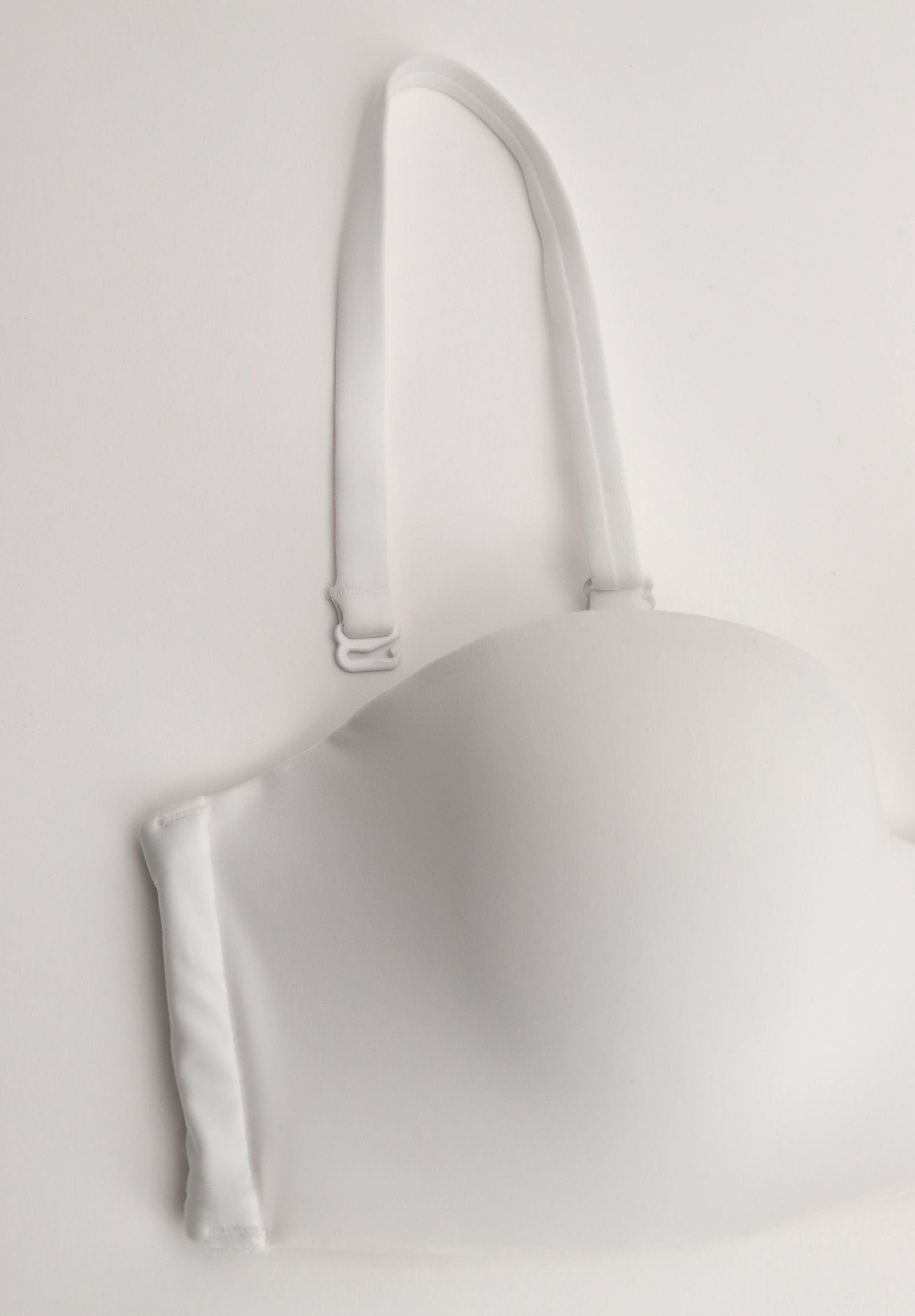Fascia con ferretto realizzata con speciali coppe imbottite preformate in tessuto morbido ed innovativo. Balenette laterali e struttura interna conferiscono un ottima adattabilità del capo ed un perfetto sostegno. Microfibra leggera, con effetto mano pesca, morbida e leggermente brillante. Il laterale ed il sottoseno hanno un elastico con silicone per conferire al capo un'ottima aderenza al corpo. Le spalline ricoperte in microfibra sono sfilabili. Le cuciture sono nascoste, ed il capo è invisibile sotto agli abiti. Il gancio di chiusura dietro è a 4 posizioni. E' il capo ideale da indossare con abiti o camicie scollati.