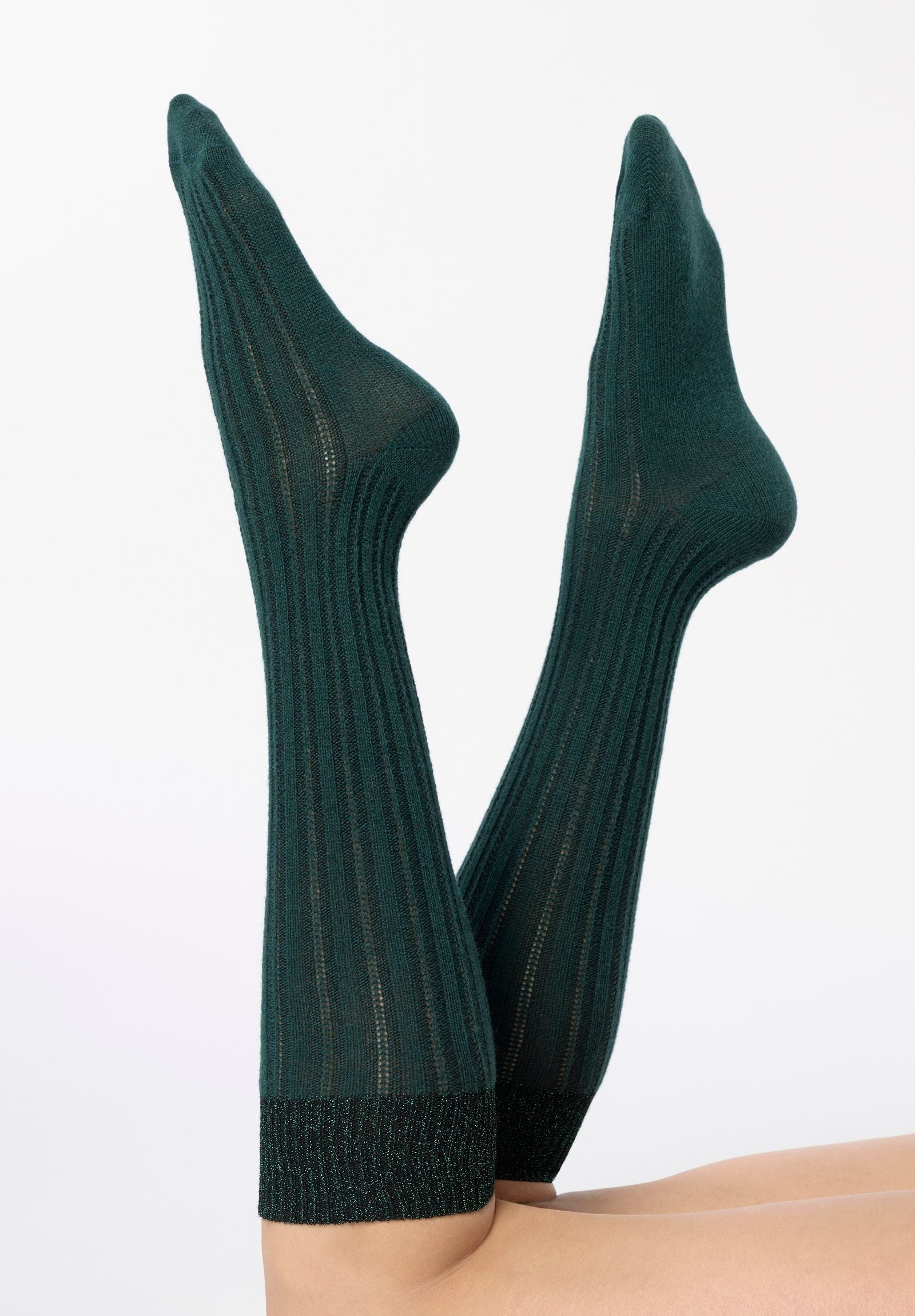 Aggiungi un tocco di eleganza e comfort ai tuoi outfit con questi gambaletti in taglia unica, realizzati con pregiati materiali per garantire una sensazione di morbidezza e calore in ogni passo. Questi calzini combinano l'effetto termico della lana alpaca con la delicata freschezza del cotone, per un connubio perfetto di comfort e stile. Il motivo ajurèe conferisce a questi calzini un fascino unico, creando un design raffinato che si adatta facilmente a qualsiasi look, sia casual che formale. Sfoggia questi calzini sotto pantaloni o gonne per aggiungere un tocco di eleganza in più ai tuoi abiti preferiti. Per un dettaglio brillante e luccicante, abbiamo arricchito il polso di questi calzini con un sottile bordo in lamé, che cattura la luce in modo delicato e dona un tocco di raffinatezza al tuo stile. Il cotone e la lana alpaca utilizzati in questi calzini garantiscono una traspirabilità ottimale e un comfort duraturo.